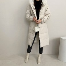 미쏘 여성용 퍼 후드 롱 패딩