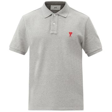 아미 하트 로고 엠브로이드 오가닉 코튼 피케 폴로셔츠 그레이