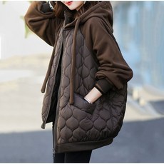 여성 빅사이즈 루즈핏 이음 패딩점퍼 후드집업 면 겨울 아우터 맨투맨 자켓 4컬러