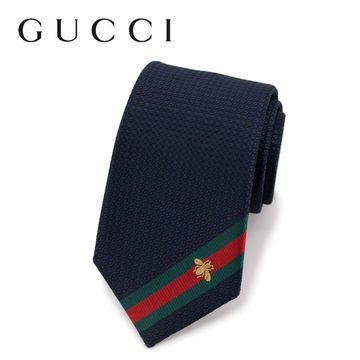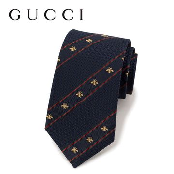 구찌 벌 및 웹 실크 넥타이 네이비 456510 4E002 4066