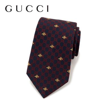 구찌 벌 GG 패턴 실크 넥타이 네이비 545078 4E002 4174