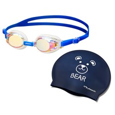 피닉스 아동 미러 수경 PN-505JM+ 아동 실리콘수모SET, 블루