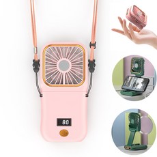 ARTECK 휴대용 접이 미니 선풍기 핸디형 탁상용 겸용 목걸이 선풍기, 핑크, F3