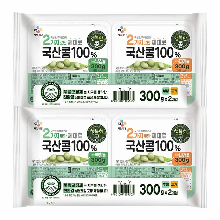 행복한콩 2가지로만 국산콩두부 부침찌개 300gX2개입X2개