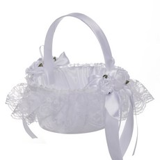 결혼식용 꽃바구니 레이스 & 플라워 장식 화이트 새틴 캔디백, 1개