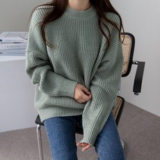 바이단미 MADE 여성용 풀오버 스웨터 라운드넥 오버핏 도톰 소프트 벌룬 루즈핏 니트