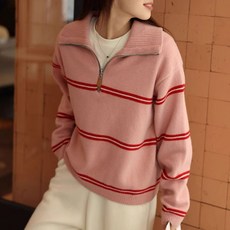 데일로엔 여성 줄무늬 포인트 반집업 니트 티셔츠