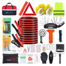 Upautopia 자동차 안전용품 세트(차량용망치+응급처치키트+타이어공기압점검+점퍼케이블+차량용삼각대+멀티툴+견인로프+타이퍼펑크패치+랜턴+비상담요 등 16종), 1개, 혼합색상