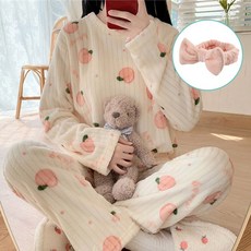 생활의 지혜 여성 극세사 잠옷 파자마 + 세안 헤어밴드 세트