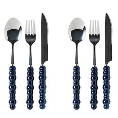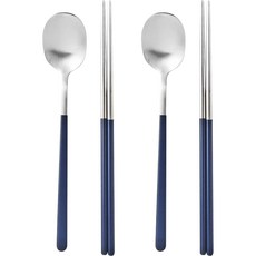모다키친 나봄 수저 2인 세트, 실버 + 네이비, 숟가락 2p + 젓가락 2p, 1세트