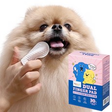탐사 반려동물 듀얼 패드 일회용 손가락 칫솔, 화이트 + 도트블루, 30개