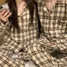 소랜디 긴팔 체크 커플 잠옷 카라 신혼부부 집들이 홈웨어 파자마