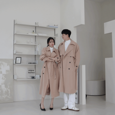 여성 캐주얼 루즈핏 더블 트렌치 코트 데일리 래글런 트렌치 코트