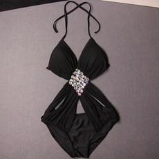 화려한 수영복 뱃살착시효과 호캉스 수영복, 검은 색