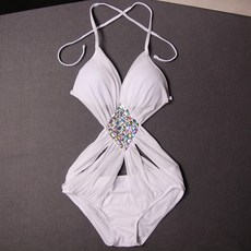 화려한 수영복 뱃살착시효과 호캉스 수영복, 하얀색