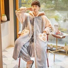 Crzen 빅 사이즈 커플 잠옷 세트 남녀 도톰 가운 플란넬 홈웨어 23D830