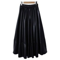 바비팩토리 여성용 뒷밴딩 가죽 레더 플레어 롱 스커트