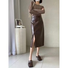가죽 스커트 옆절개 A라인 크리스마스 연말파티 브라운 미디스커트 BQ2102408