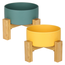 멍지 반려동물 2단 높이 도자기 식기 2종 세트 S, 그레이, 옐로우, 1세트