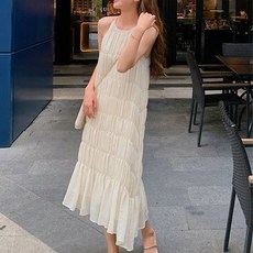 UPPERCUT 여성 민소매 쉬폰 뷔스티에 주름 캉캉 롱원피스