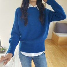 제니트 여성용 데일리룩 베이직 반오픈 긴팔 마유골지 칼라넥 니트 n1925