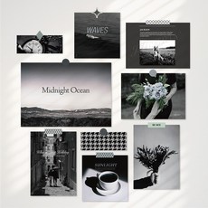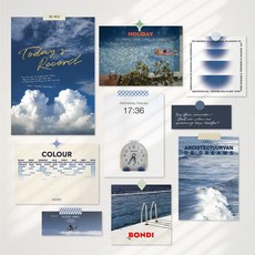 엽서 포스터 블루 데코팩 ver.01 엽서세트 감성 엽서 인테리어소품 하늘 구름포스터 블루 인테리어 바다 파도 미드센추리 외국감성 빈티지엽서, 베이직라운드스티커4종세트
