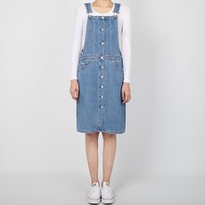 캘빈클라인 여성 청치마 데님 오버롤 미디 멜빵 원피스 미드블루 J218840