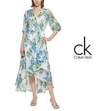 캘빈클라인 플로럴 벌룬 소매 맥시 원피스