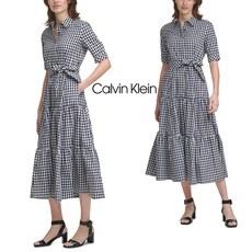 캘빈클라인 여성 체크 리본 셔츠 드레스 원피스