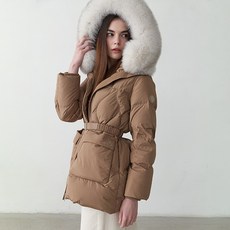 여성 폭스퍼 롱패딩 오리털 100% 후드 점퍼 덕다운 겨울 벨트 자켓 [마티]