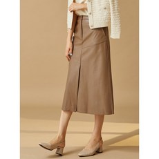 마켓에이 여성용 미디 트임 가죽 스커트