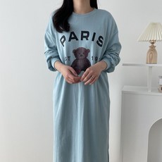 위시엘 곰돌이 베어 프린팅 맨투맨 롱 원피스
