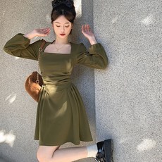 피어니스트 스퀘어넥 셔링 A라인 미니 원피스