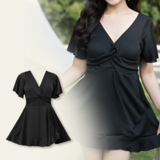 유토밸런 여자 체형커버 빅사이즈 모노키니 호캉스 휴양지 원피스 수영복, 블랙