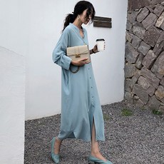 일이오 여성 베이직 셔츠형 허리끈 롱 원피스