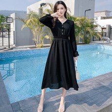 엘쏘 프랑스 소녀 하이엔드 햅번 긴팔 드레스
