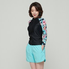 베이직엘르 여성용 플라워 롱 플레어 중년 래쉬가드 상하 세트 BEL-R224K