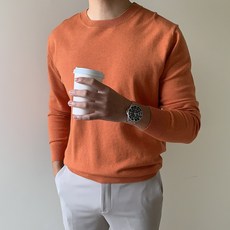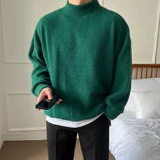 남자 오버핏 니트 골지 스판 맨투맨 세미 긴팔 스웨터 코디