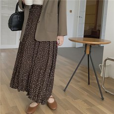 맨드리 밴딩 쉬폰 주름 도트 롱스커트