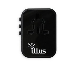 일루스 4포트 고속충전 해외 여행용 멀티 플러그 어댑터, 1개, 블랙