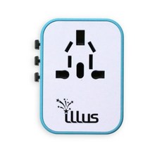 일루스 4포트 고속충전 해외 여행용 멀티 플러그 어댑터, 1개, 블루