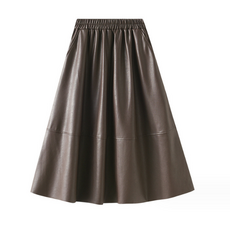 하이로나 레더 스커트 라인 스커트 레더 스커트 미디 레더