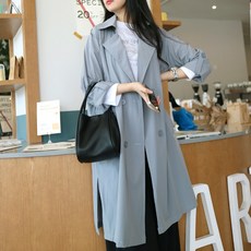 여성 캐주얼 루즈핏 더블 트렌치 코트 데일리 래글런 트렌치 코트