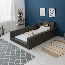 브라보가구 캐서린 LED저상형 ㄷ형 침대+프리미엄 독립매트리스, 모카그레이