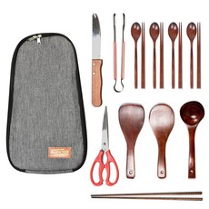 벅703 감성캠핑 옻칠 우드 조리도구 16종세트, 멜란지(가방), 1개