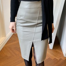 비비에모 슬림 사선 트임 레더 스커트 04731