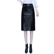 잘빠진 여성용 2단기장 레더 A라인 슬림 스커트 미디