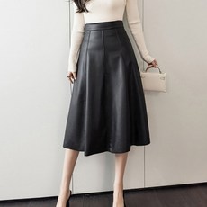 하이로나 레더스커트 a라인스커트 가죽 치마 미디 레자