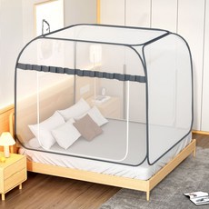 몽땅겟 바닥있는 원터치 텐트형 사각 침대 모기장, 그레이