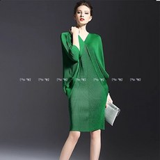 플리츠주름원피스 더블샵 이세이미야케스타일 주름옷 날씬한 가오리소매 브이넥 주름원피스